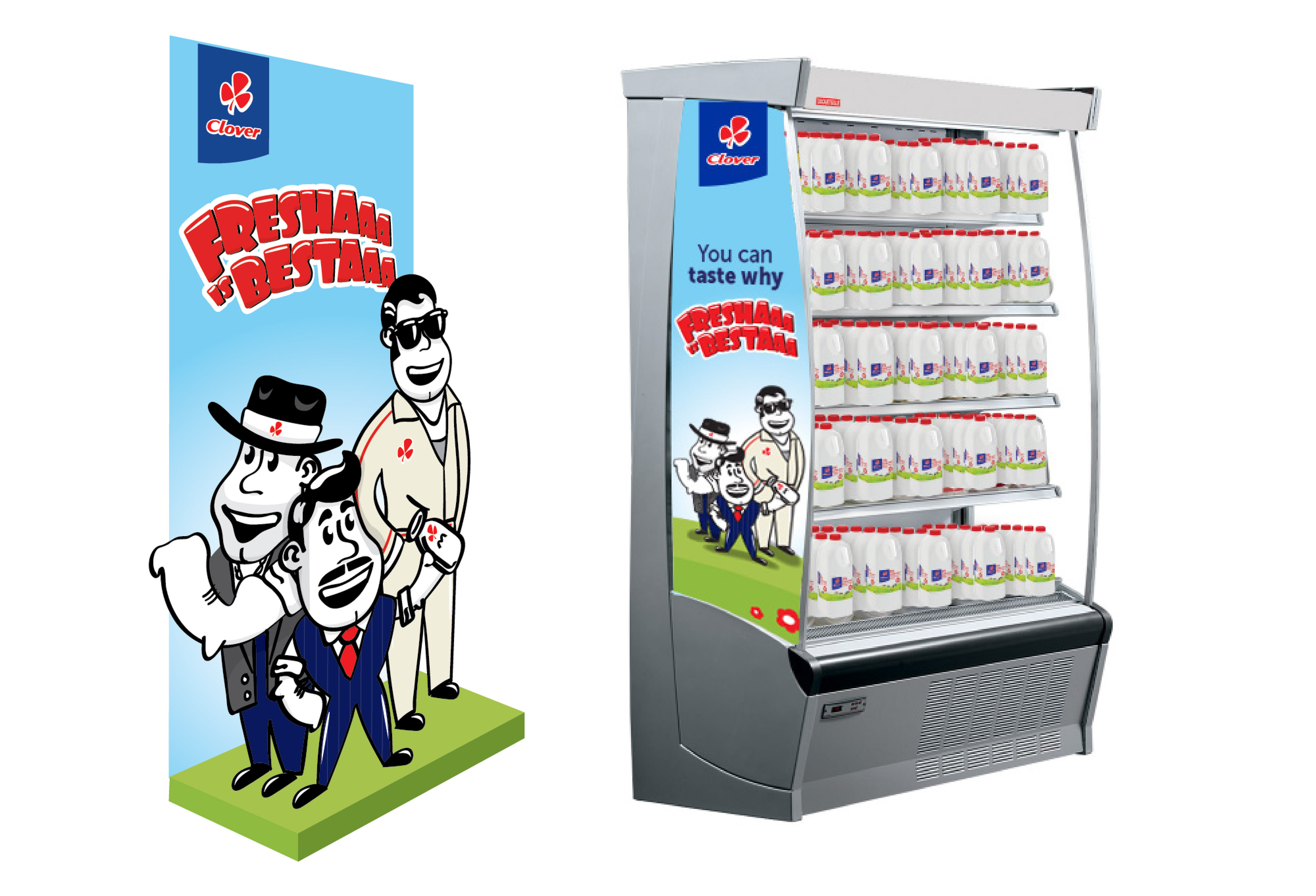 The 3 characters were cast and were given a segment on a morning show to follow their adventures as they travelled around South Africa in their Fresha is Besta milk truck to spread the word and delicious recipes of Clover Fresh milk.
